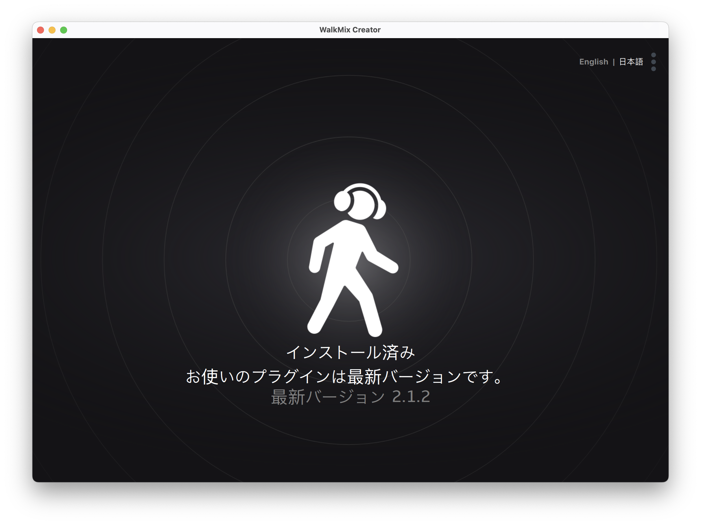 こちらのWalkMix Creatorアプリケーションで行えるのはプラグインのインストール、およびアップデートのみとなります。