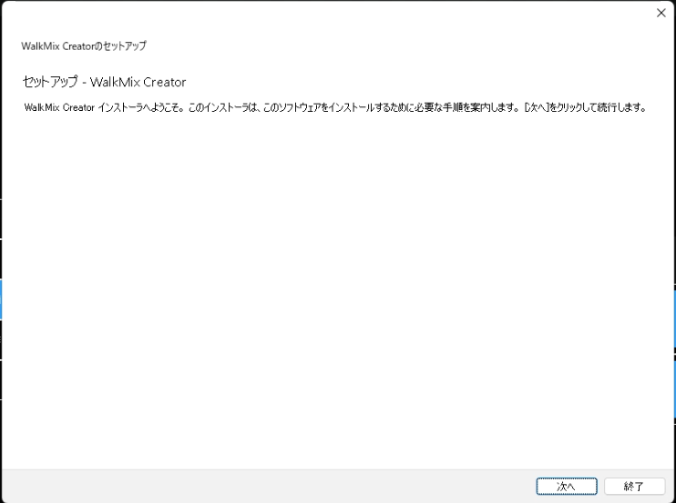 6. インストールが完了しましたら以下の表示となりますので、WalkMix Creatorアプリを終了します。