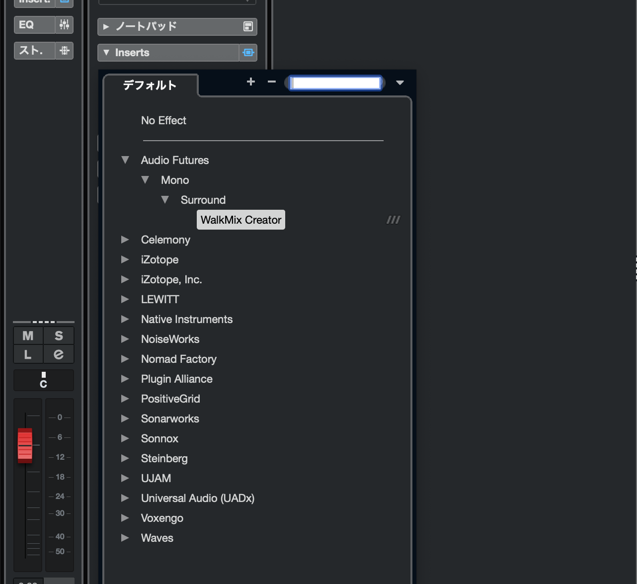 実際にWalkMix Creatorをご使用いただく際はDAWソフトウェア上でプラグインとして「WalkMix Creator」プラグインを読み込んでご使用いただく必要がある点にご留意ください。