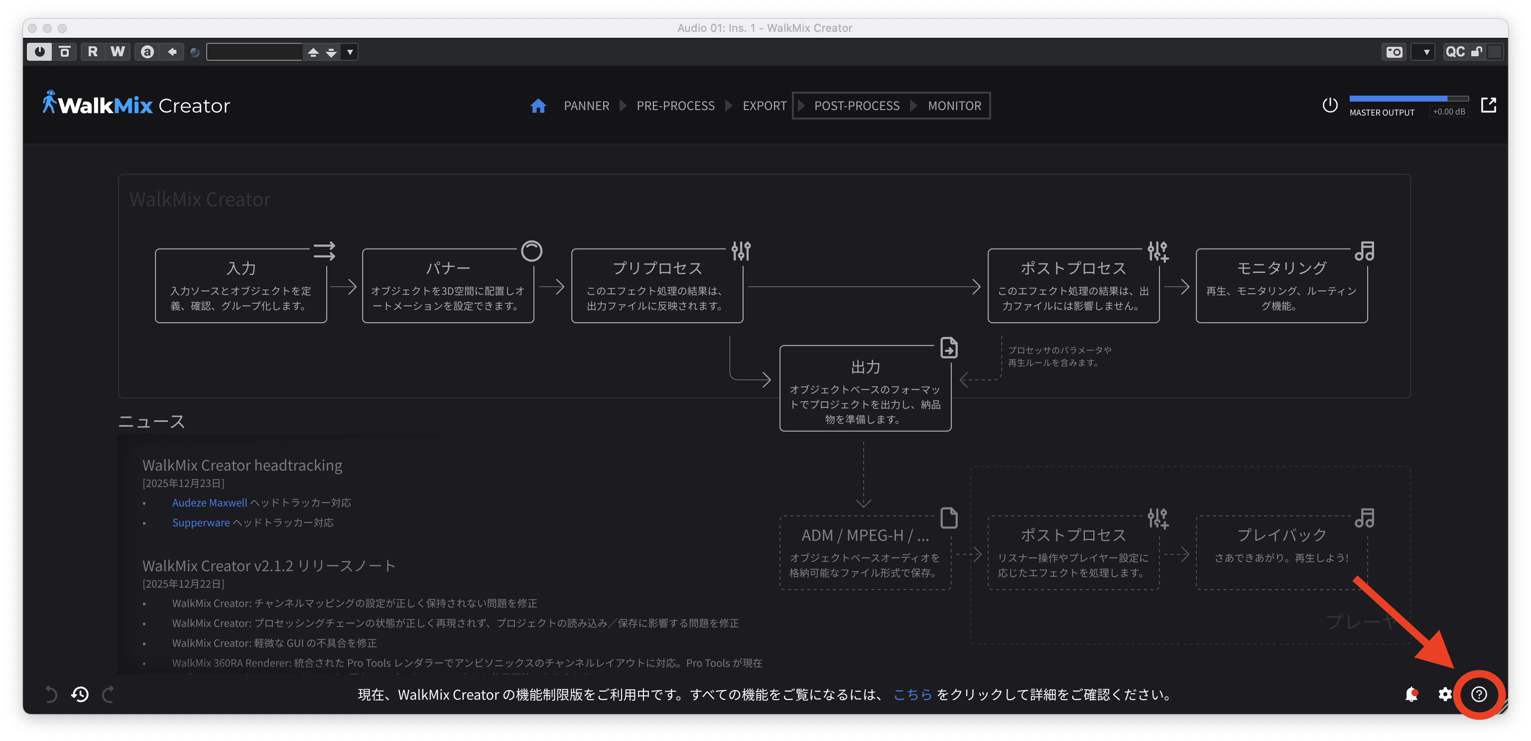 上記手順でインストールが完了しましたら、ご使用のDAWソフトウェア上で「WalkMix Creator」プラグインを起動・使用できるかどうかをご確認ください。