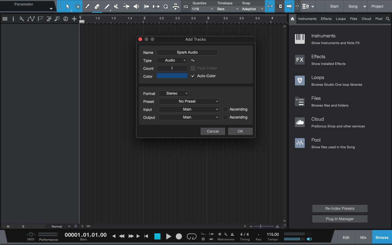 Spark & PreSonus Studio Oneでの基本設定方法