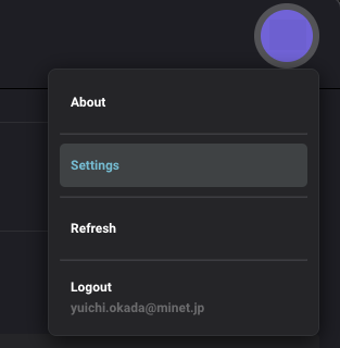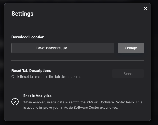 inMusic Software Centerの右上アカウントアイコンのメニューから、Settingsをクリックします。