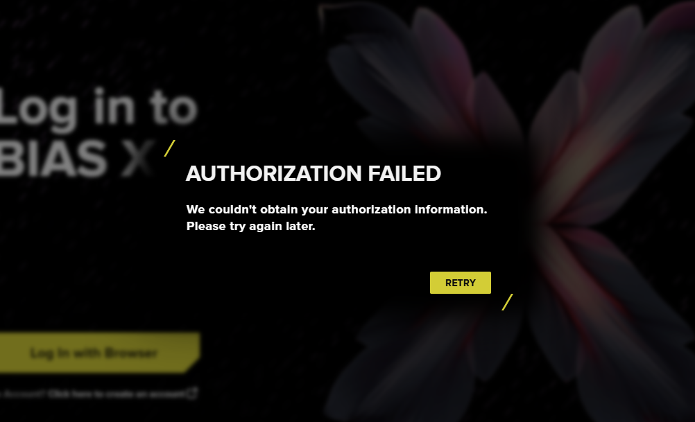BIAS Xにログイン後 "AUTHORIZATION FAILED" と表示される(Windows)