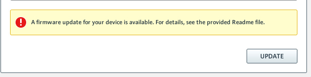 4. アップデータにNewest Firmwareと、Installed Firmwareのバージョンが表示されます。UPDATEボタンをクリックしてください。