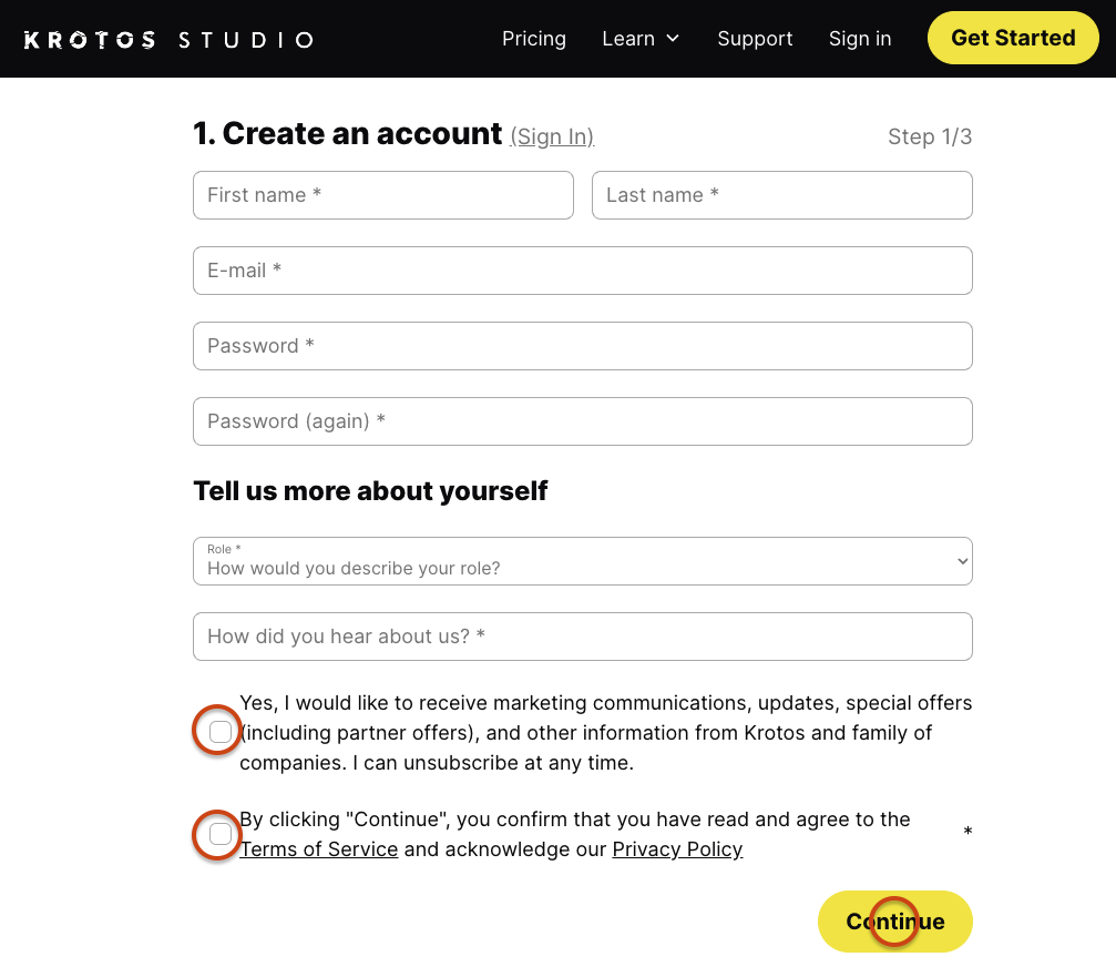 Krotos Studio 登録、ダウンロード手順