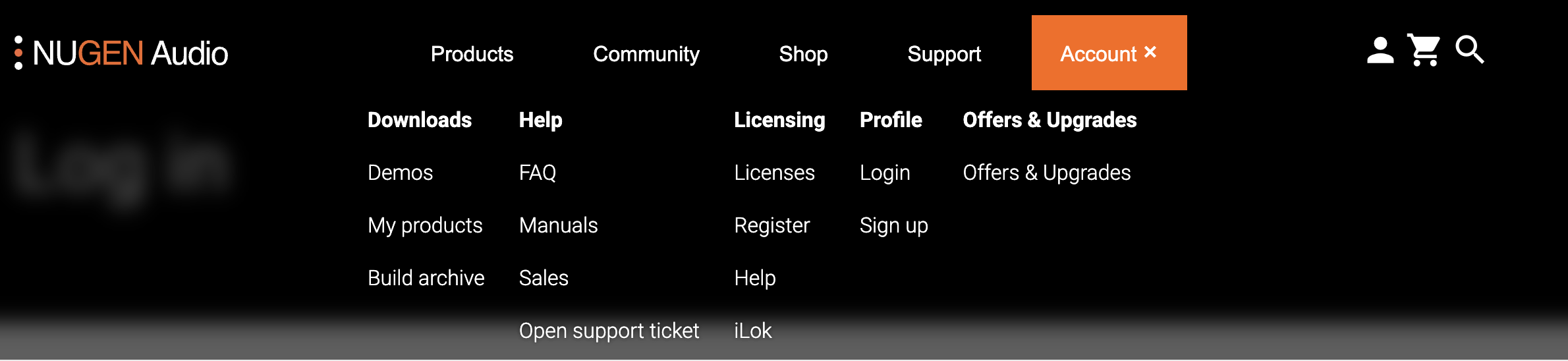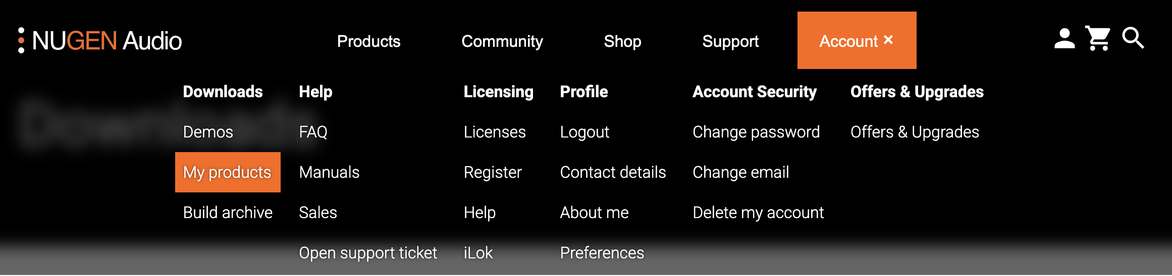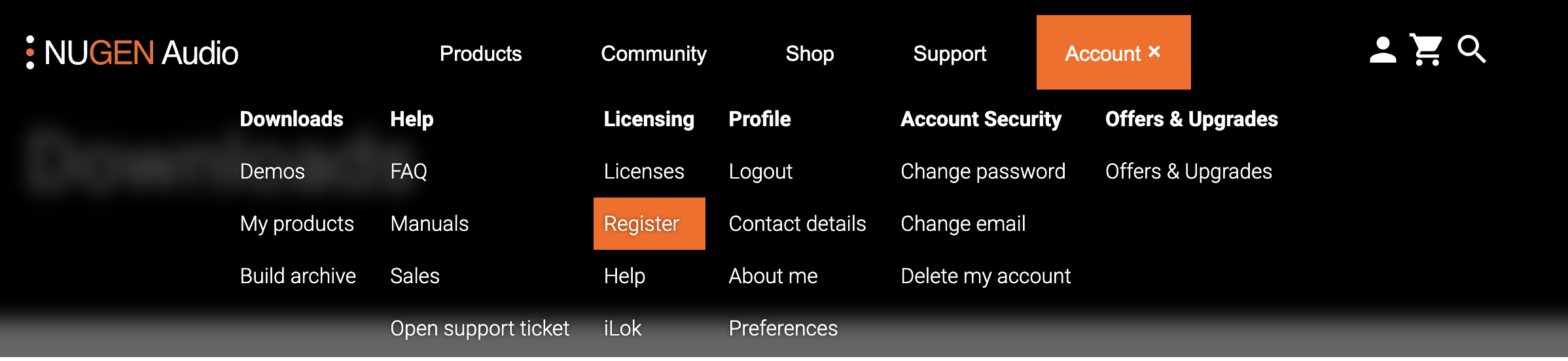 NugenAudioアカウントにログインし、メニューからLicensing>Registerを開きます。
