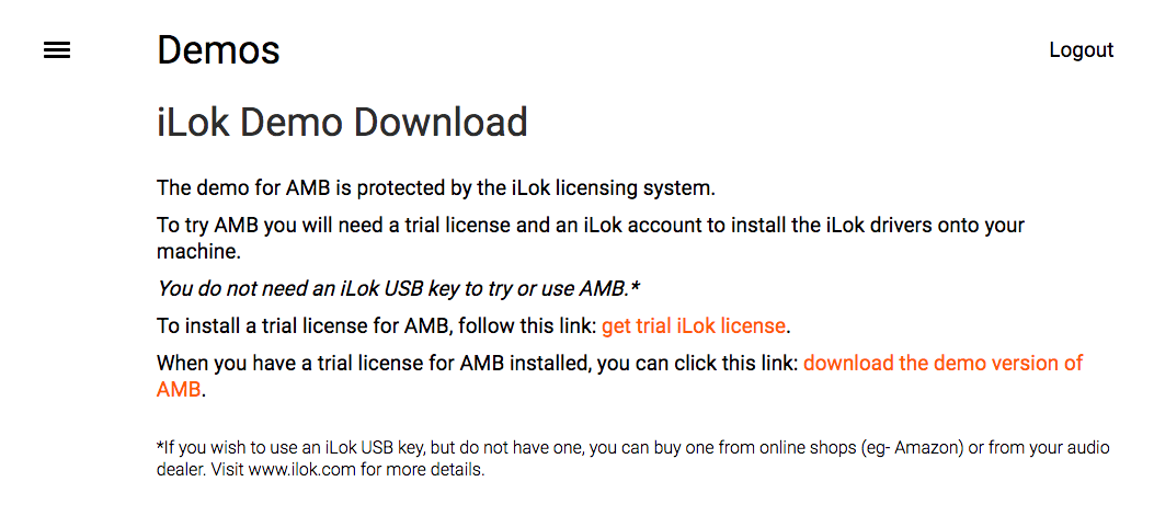 *AMB、HaloUpmix/Downmix、VisLM2、ISL、Visualizerの各DSP版のデモ版の場合(事前にiLok.comアカウントが必要です)