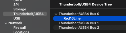 macOS Sequoia 15.x 搭載 Mac の一部において、Focusrite Thunderbolt ドライバーの読み込みに失敗することがあります。インターフェースは システム情報 > Thunderbolt に表示されますが、システム情報 > オーディオ では表示されず、オーディオデバイスが追加されない状態となります。
