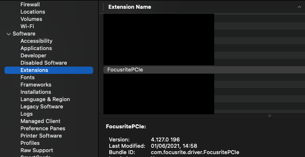 機能拡張 | com.focusrite.driver.FocusritePCIe が表示されない |