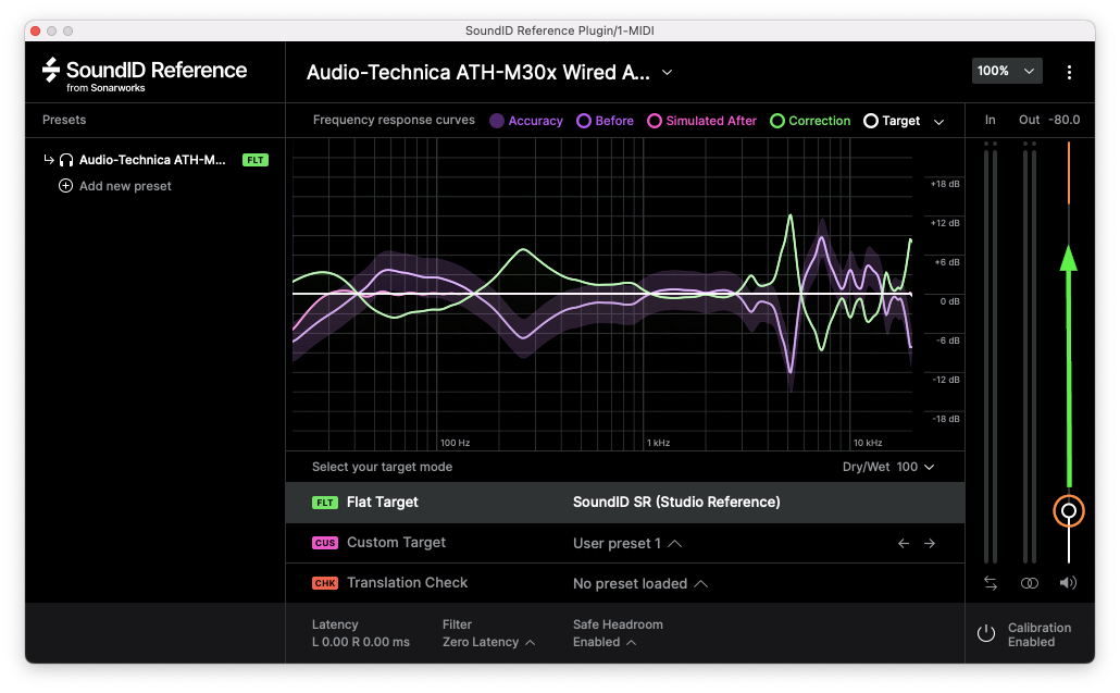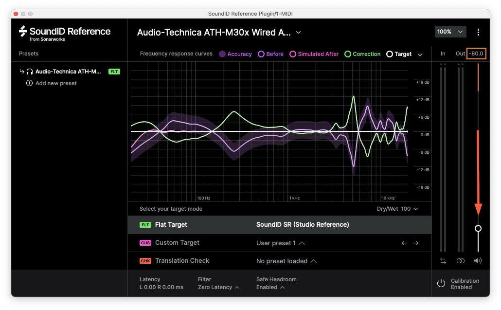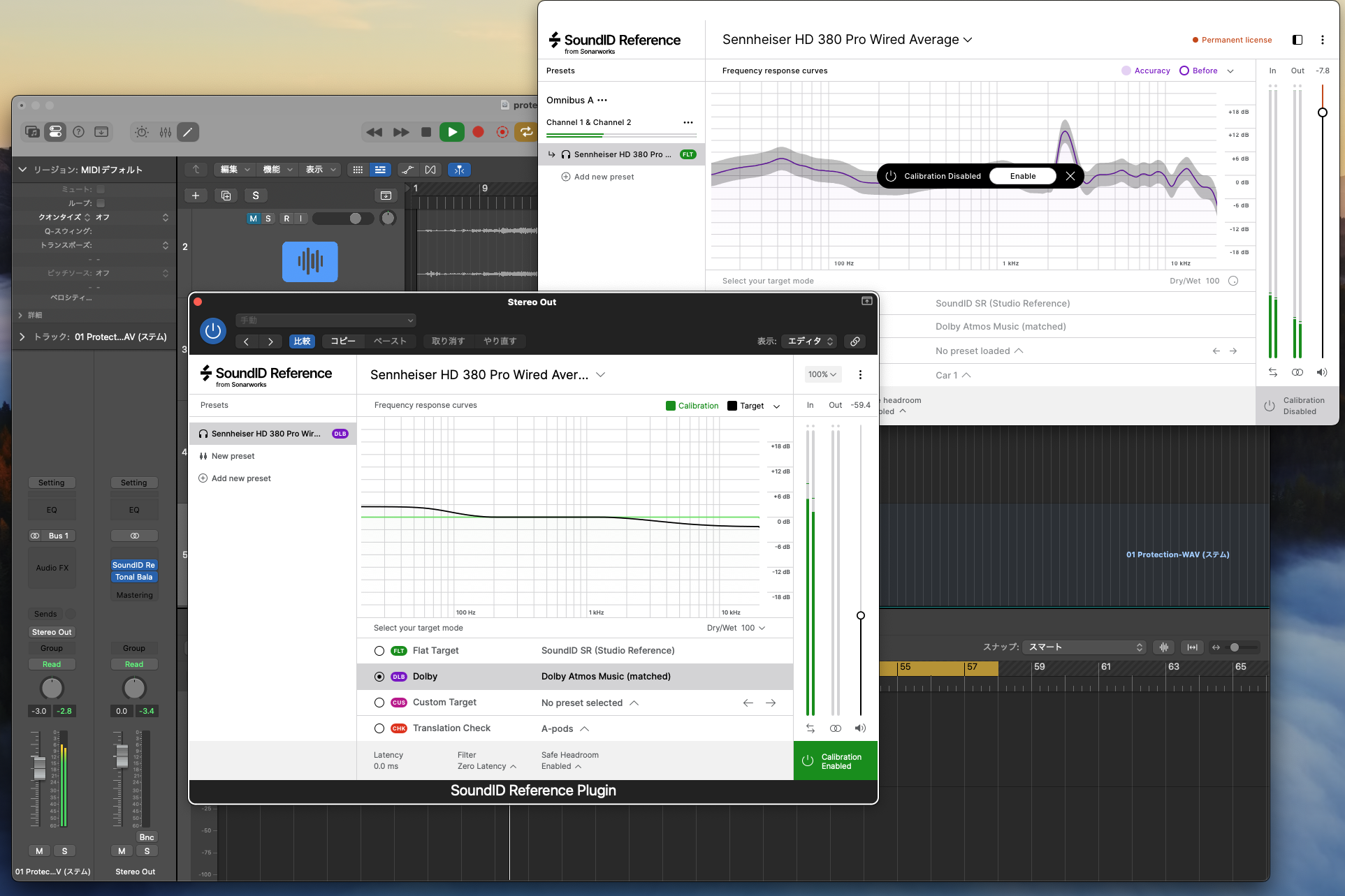 SoundID Referenceのプラグインとスタンドアローンアプリケーションが同時に起動している場合、補正が重複しないようプラグインがミュートされます。