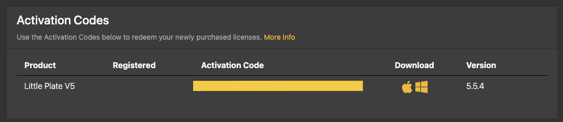 登録完了後、My Productsタブに移動します。Activation Code欄に数字のコードが表示されます。こちらをクリックすると「copied!」の表示がされ、コードがコピーされます。