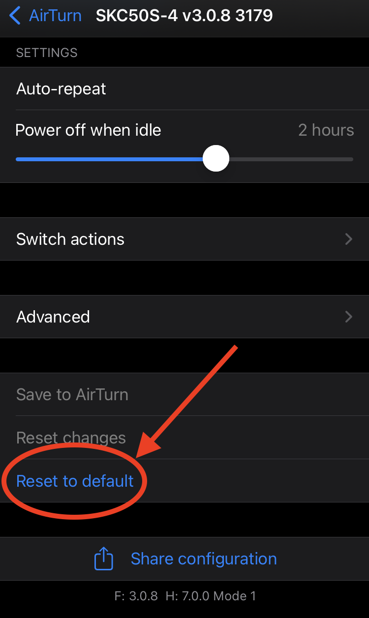 5. 下にスクロールして「Reset to default」オプションををタップするとSpark Control がデフォルトにリセットされます。