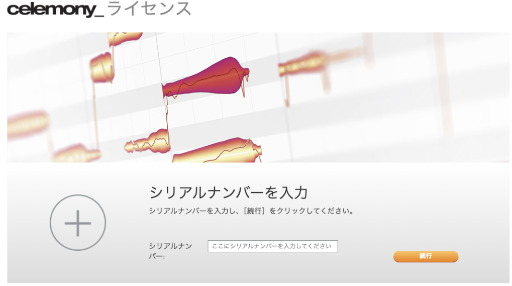 コードをコピー後、Continueをクリックすると、ブラウザでCelemonyのご登録ページが表示されます。Register serial numberをクリックします。